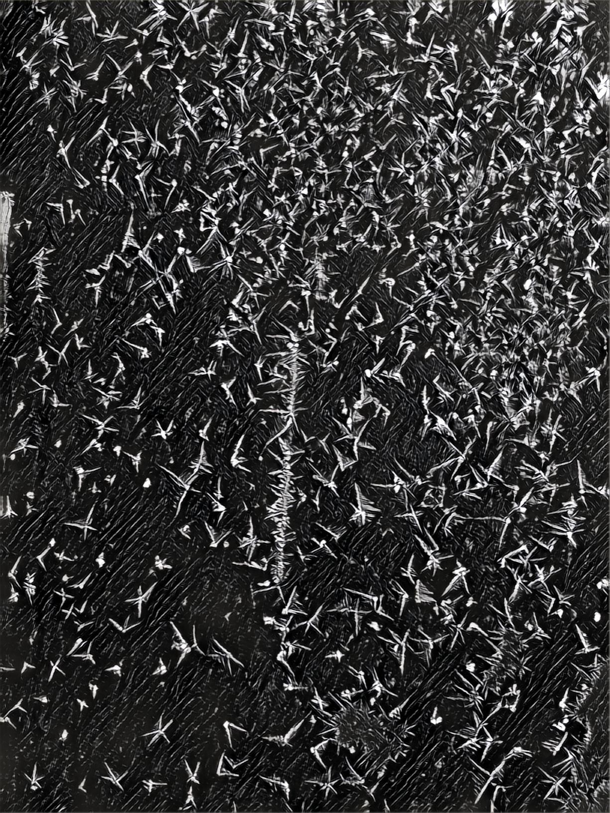 早饭后,往东门看日出,见铁门上冰华好看,随摄影之,美化之。